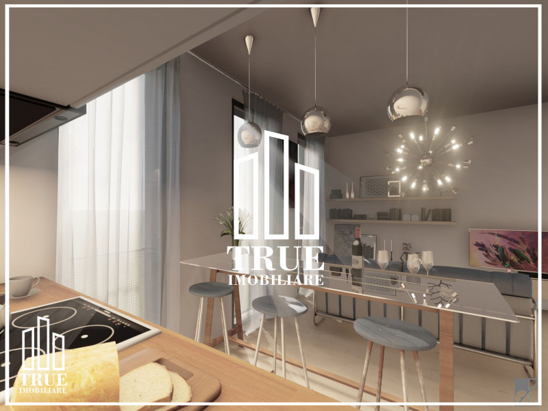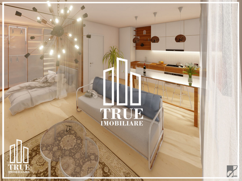 TRUE IMOBILIARE vinde studio, decomandat, 38.46 mp, zona Centru. Compartimentare: bucătărie + baie + living + dormitor