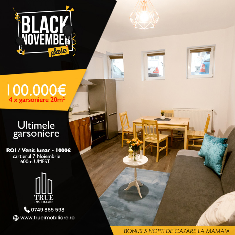 True Imobiliare îti propune o oportunitate de investiție, 4 x garsoniere de 20m² în cartierul 7 Noiembrie - Târgu-Mureș, la 600m distanță de UMFST.