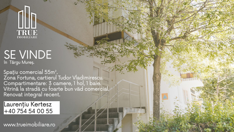 True Imobiliare vă prezintă în exclusivitate spre vânzare un spațiu comercial de 55m² în cel mai căutat cartier din Targu Mures, Tudor Vladimirescu.