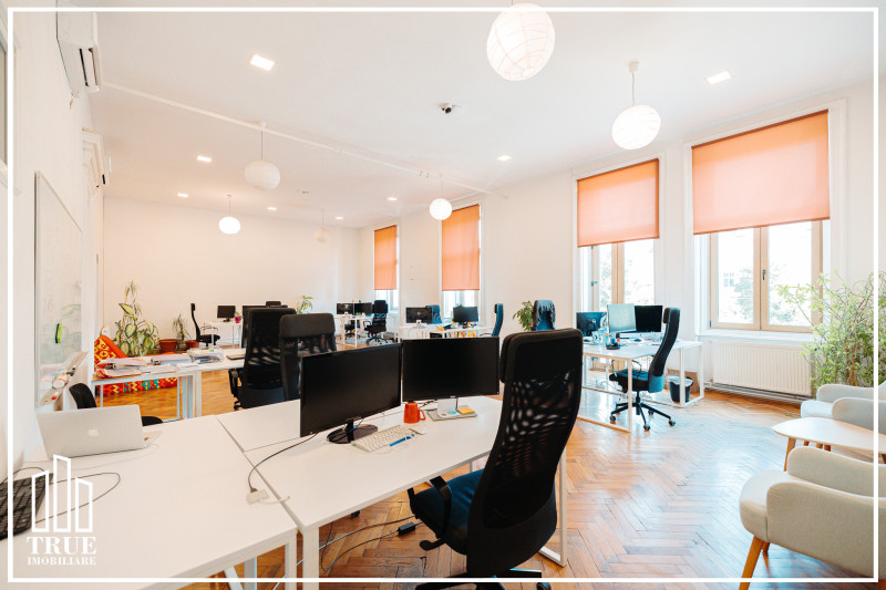 - La momentul de față spațiul este închiriat unei companii de IT, dar datorită suprafeței se pretează pentru mai multe domenii de activitate.
