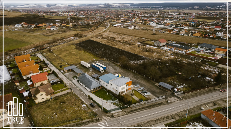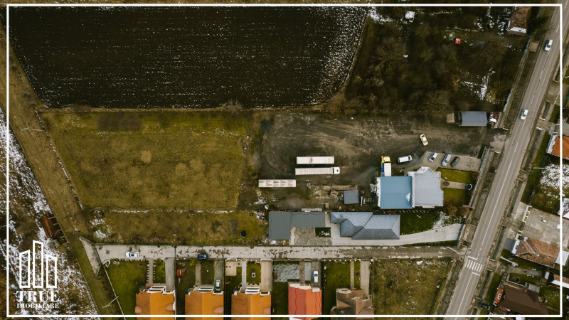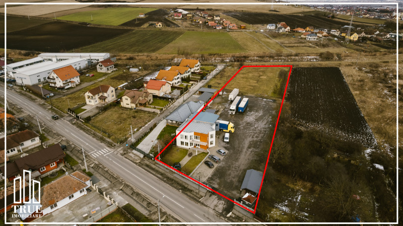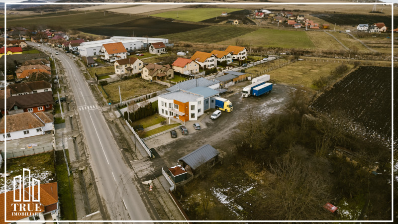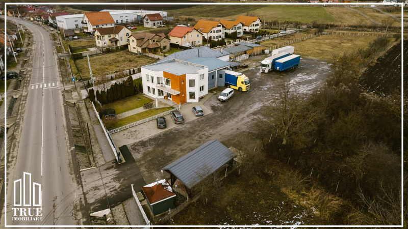 Acestă proprietate este ideală pentru o afacere care are ca și domeniu de activitate transportul intern / internațional având posibilitatea de a parca până la 50 de camioane, terenul fiind deja tasat și pregătit pentru acest lucru, o clădire de birouri pentru a administra afacerea, o zonă verde de relaxare, parcare pentru angajați cât și pentru clienții firmei.